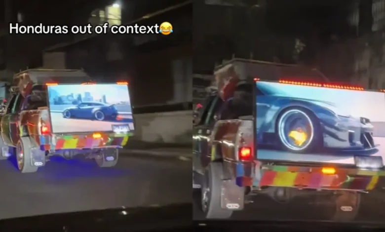 Un conductor que circulaba por una de las calles del país quedó sorprendido al ver como un hondureño colocó nada más y nada menos que una pantalla plasma en la parte trasera de su carro.