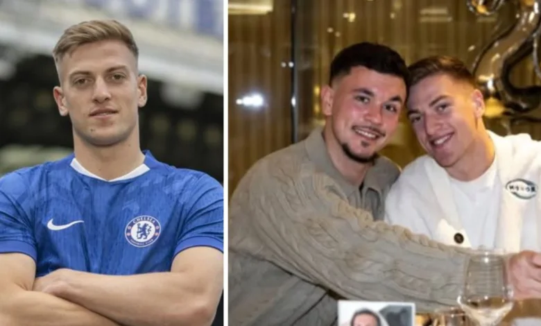 “¡VIVAN LOS NOVIOS! El delantero del Chelsea Liam Delap junto a su pareja Cieran Slicker, portero del Ipswich Town.”, “Amor fuera de la cancha: el delantero del Chelsea, Liam Delap, le desea feliz cumpleaños a su pareja, el portero del Ipswich Town, Cieran Slicker.”